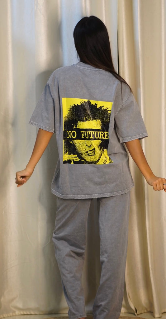 'No Future' Puff Print Acid Wash Co-ord Set